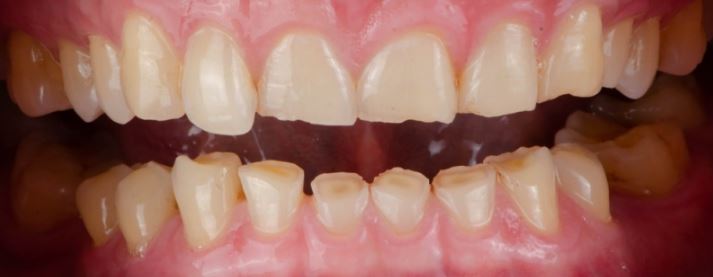 - Rechinamiento: a parte de apretar, incluye movimientos laterales cortos, aumentando el desgaste de los dientes.
