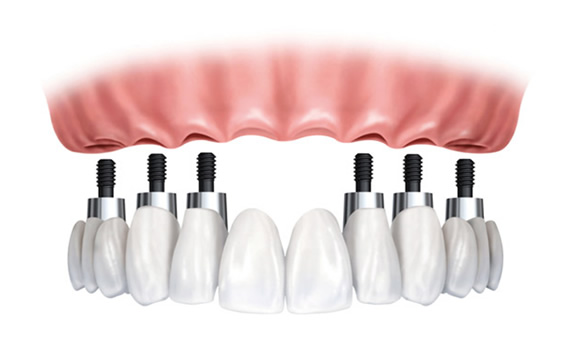 Se trata de una prótesis fija sobre implantes dentales , rehabilitando una de las arcadas (superior o inferior).